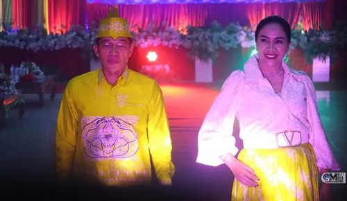 Menggunakan pakaian batik warna kuning yang dipadu dengan sedikit campuran warna putih, Perdie beserta Ketua TP-PKK kabupaten setempat, Lynda Kristiane, berjalan di tengah kerumunan penonton yang menyaksikan kegiatan tersebut.
