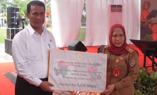 Dalam kesempatan itu, Mentan menyerahkan bantuan bibit padi hibrida dan saprodi senilai Rp 8,5 miliar, serta benih jagung hibrida senilai Rp 630 juta kepada pemerintah Prov. kalteng yang diterima langsung Kepala Dinas Pertanian Provinsi Kalimantan Tengah Sunarti.