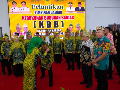 KUALA KAPUAS. Kaltengtimes.co.id – Ketua Umum PWI Keluarga Bubuhanh Banjar (KBB) Provinsi Kalimantan Tengah Drs. H. Chairuddin Halim meminta kepada jajaran Pengurus Daerah Keluarga Bubuhan Banjar Kabupaten Kapus untuk turut serta mendorong kemajuan pembangunan Kabupaten Kapuas dan berbuat baik bagi masyarakat setempat dalam bingkai Negara Kesatuan Republik Indonesia (NKRI). Hal tersbeut diungkapkan Chairuddin Halim dalam sambutannya pada pelantikan PD KBB Kapuas masa bakti 2023-2028 yang berlangsung di Aula Rujab Bupati Kapuas, Kamis (21/12/23).
