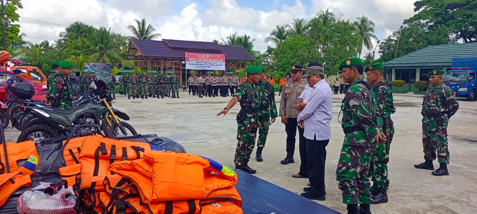 Dalam kesempatan tersebut Letkol Inf. Khusnun Dwi Putranto didampingi Kepala Dinas Sosial Yan Marto, pihak Damkar Jendrawan, perwakilan BPBD melakukan pengecekan kondisi sejumlah peralatan dan perlengkapan.
