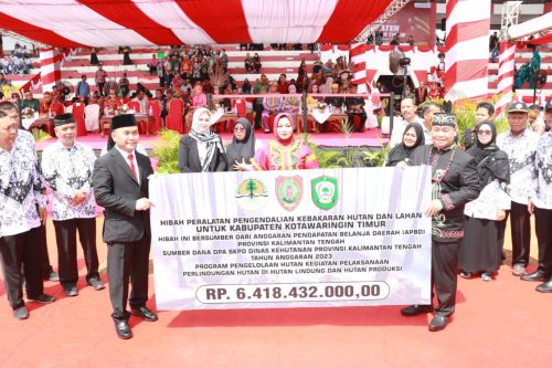 Rangkaian Hari Jadi ke-71 Kabupaten Kotawaringin Timur, dilakukan hibah Peralatan Pengendalian Hutan dan Lahan untuk Kabupaten Kotawaringin Timur yang bersumber dari APBD Prov. Kalteng sumber Dana DPA SKPD Dinas Kehutanan Prov. Kalteng senilai Rp. 6.418.432.000.