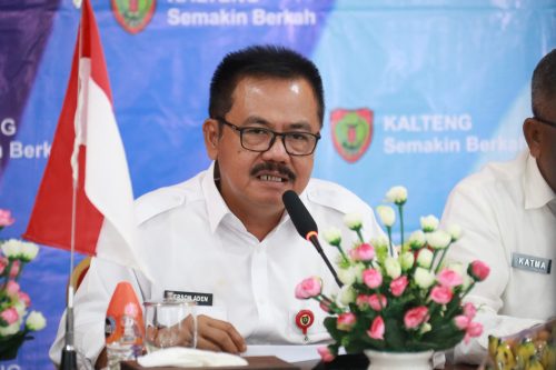 PALANGKA RAYA. Kaltengtimes.co.id — Plh. Asisten Bidang Pemerintahan dan Kesejahteraan Rakyat (Pemkesra) Setda Prov. Kalteng Herson B. Aden yang juga merupakan Wakil Ketua Desk Pemilu Prov Kalteng memimpin Rapat Persiapan Penyelenggaraan Pemilu Tahun 2024, bertempat di Sekretariat Desk Pemilu Tahun 2024 Kantor Badan Kesbangpol Prov. Kalteng, Rabu (7/2/2024). Rapat ini diikuti oleh Unsur Forkopimda serta dari KPU dan Bawaslu kabupaten/ kota se-Kalteng secara virtual dari tempat masing-masing.