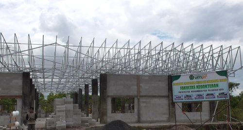 Pembangunan Gedung Sarpras Laboratorium Anatomi Fakultas Kedokteran UMPR yang dalam tahap pengerjaan. (Photo/ivan)