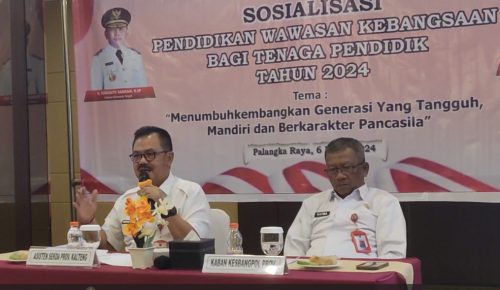 PALANGKA RAYA. Kaltengtimes.co.id — Plh. Asisten Bidang Pemerintahan dan Kesejahteraan Rakyat Sekretariat Daerah Provinsi Kalimantan Tengah Herson B. Aden mewakili Sekretaris Daerah Prov. Kalteng membuka secara resmi kegiatan Sosialisasi Pendidikan Wawasan Kebangsaan Bagi Tenaga Pendidikan Tahun 2024, bertempat di ruang Berkah Bersinar Abadi lantai dasar Hotel Best Western Batang Garing Palangka Raya, Rabu (6/3/2024).