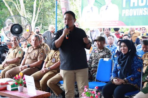 Wagub Kalteng H Edy Pratowo menyerahkan secara simbolis paket beras murah di Kecamatan Jabiren Raya.(Photo/asep)