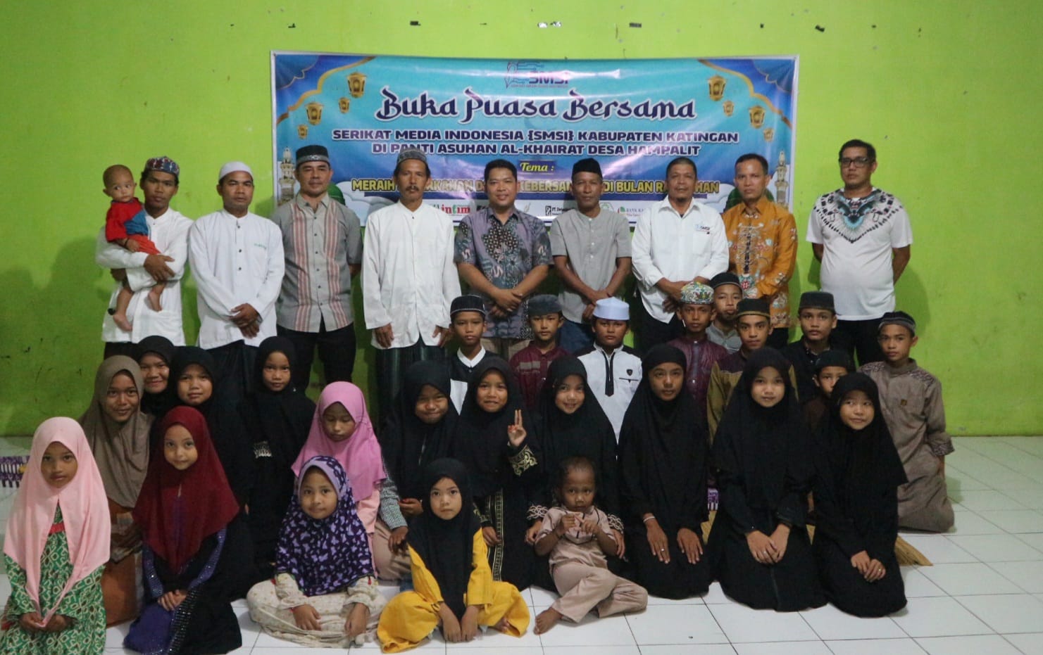 Kegiatan diisi dengan silaturahmi pengurus SMSI bersama anak-anak binaan serta pengasuh panti asuhan Al-Khairat.