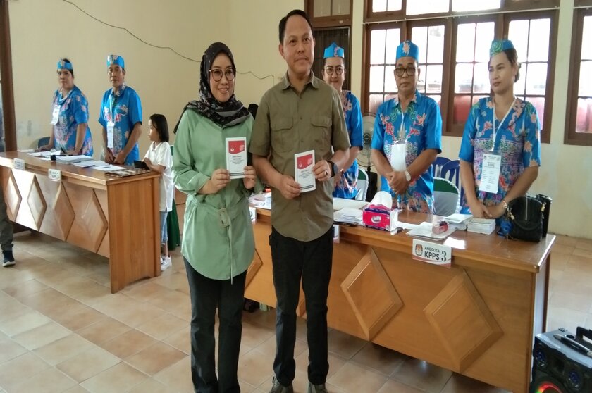 “Alhamdulillah, Saya dan Isteri telah selesai menggunakan hak pilih, semoga proses pemungutan suara berjalan lancar dan masyarakat bergembira dengan pelaksanaan pesta demokrasi ini tanpa ada hambatan apapun,” tambah Deddy.