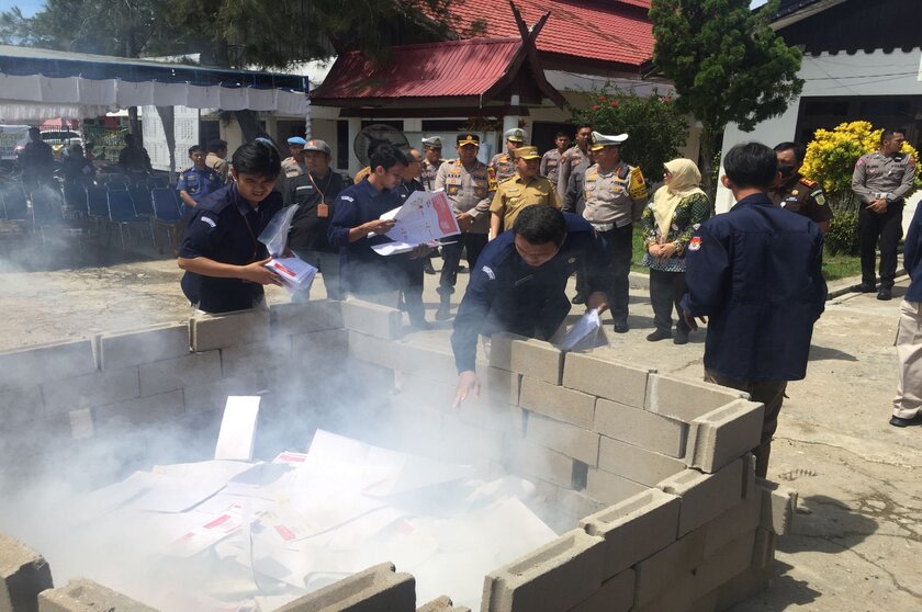 Adapun pelaksanaannya, prosesi pemusnahan surat suara rusak dan lebih bisa secara langsung dikumpulkan dan dibakar, jelas Deddy.