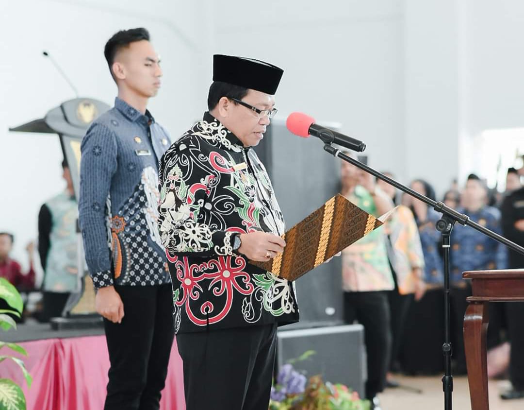 Kuala Kapuas, Kalteng Times.co.id – Pj. Bupati Kapuas Erlin Hardi, ST di dampingi Ketua TP PKK Kabupaten Kapuas Agustina Erlin Hardi hadir dalam acara penyerahan Surat Keputusan Pengawai Pemerintah dengan Perjanjian Kerja formasi Tahun 2023 dan mengambil Sumpah Janji jabatan Fungsional Pegawai Pemerintah dengan Perjanjian Kerja (PPPK) formasi tahun 2019-2023 di lingkungan Pemkab Kapuas yang dilangsungkan di Aula Utama Rumah Jabatan Bupati Kapuas pada Kamis 18/4 yang lalu.