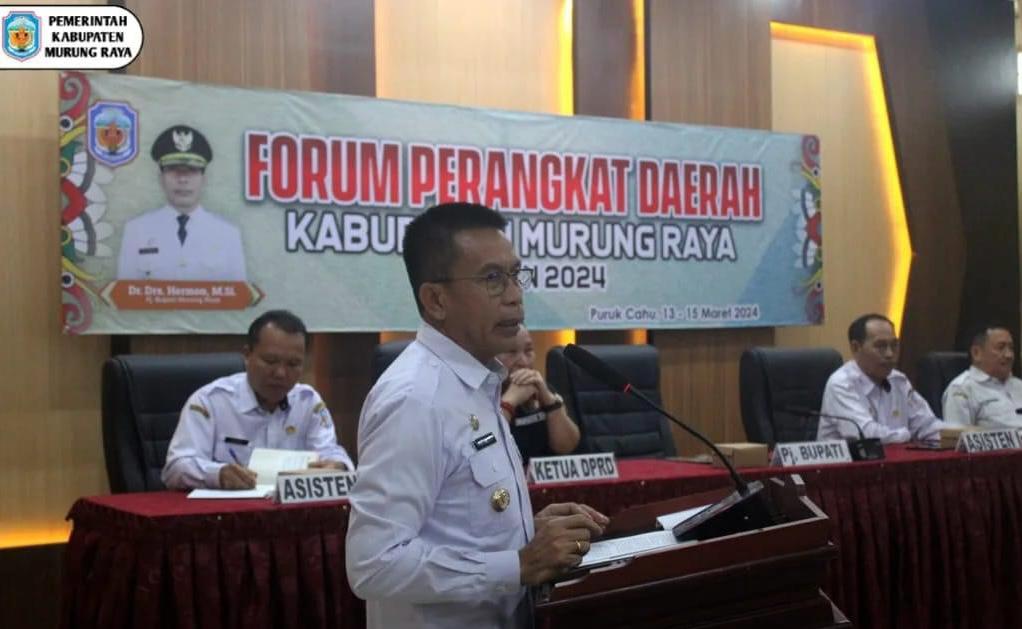 PURUK CAHU, kaltengtimes.co.id—Pj Bupati Murung Raya Hermon membuka kegiatan Forum Gabungan Perangkat Daerah Tingkat Kabupaten, untuk perencanaan anggaran 2025 di Aula Bappedalitbang Kab. Mura, Rabu (13/3/2024).