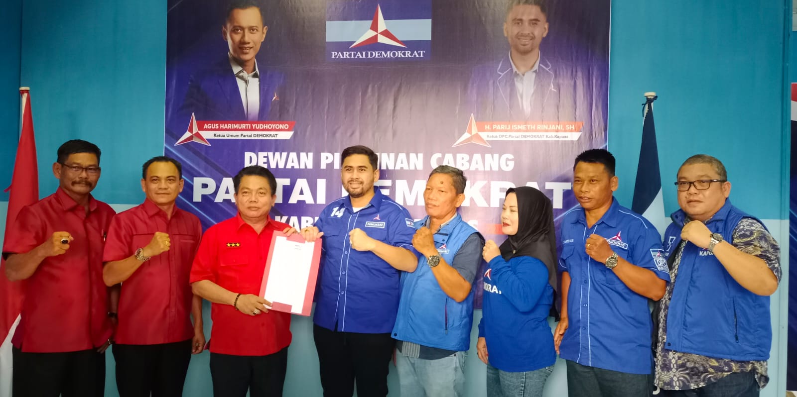 Penyerahan berkas dari HM. Wiyatno ke Ketua DPC Partai Demokrat tersebut disaksikan Ketua dan Sekretaris Penjaringan Calon Bupati / Wakil Bupati Kapuas Partai Demokrat DR. Sulang dan Didianto.