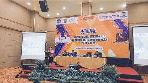 PALANGKA RAYA. Kaltengtimes.co.id — Dinas Pendidikan Provinsi Kalimantan Tengah menyelenggarakan kegiatan Bimbingan Teknis (Bimtek) Data Pokok Pendidikan (Dapodik) untuk jenjang SMA, SMK, dan SLB Tahun 2024, bertempat di Ballroom M. Bahalap Hotel Palangka Raya, Senin malam (20/5/24).