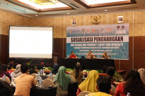 PALANGKA RAYA. Kaltengtimes.co.id — Dinas Perdagangan dan Perindustrian Provinsi Kalimantan Tengah melalui Tugas Pembantuan Tahun Anggaran 2024 menggelar Kegiatan Sosialisasi Penghargaan One Village One Product (OVOP) dan Penghargaan Upakarti, bertempat di Swiss-Belhotel Danum Palangka Raya, Kamis (6/6/2024). Kegiatan ini digelar dalam rangka upaya mengembangkan industri Kalimantan Tengah. Kegiatan tersebut diikuti oleh 67 peserta yang terdiri dari ASN Dinas yang membidangi Perindustrian Kabupaten/Kota se-Kalimantan Tengah dan pelaku usaha Industri Kecil dan Menengah (IKM) Kota Palangka Raya.