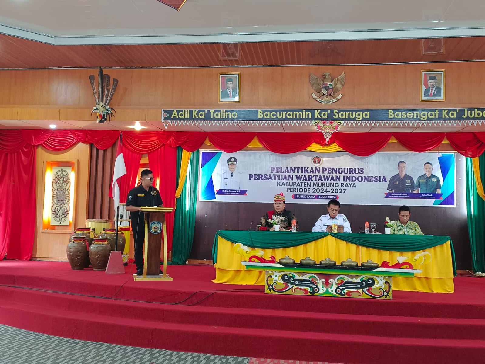 PURUK CAHU, kaltengtimes.co.id–Pengurus Persatuan Wartawan Indonesia (PWI) Kabupaten Murung Raya Periode 2024-2027 telah resmi dilantik di Gedung DAD Kabupaten Murung Raya, Rabu (5/6/2024).