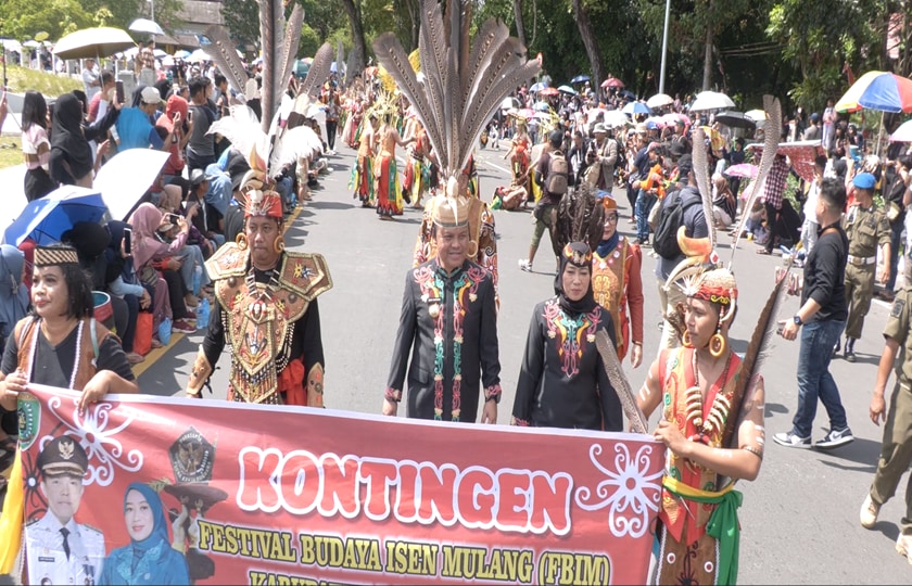 Ada yang unik dan menarik perhatian publik dalam pawai karnaval FBIM tahun ini, yakni Pj. Bupati Barsel H. Deddy Winarwan bersama Ketua TP PKK Kab. Barsel H. Erna Ardiani Palupi ikut langsung dalam kontingen Kab.Barsel dengan menggunakan pakaian adat Dayak Barsel warna hitam dan ikut berjalan kaki menjadi peserta pawai di tengah keramaian ribuan penonton.