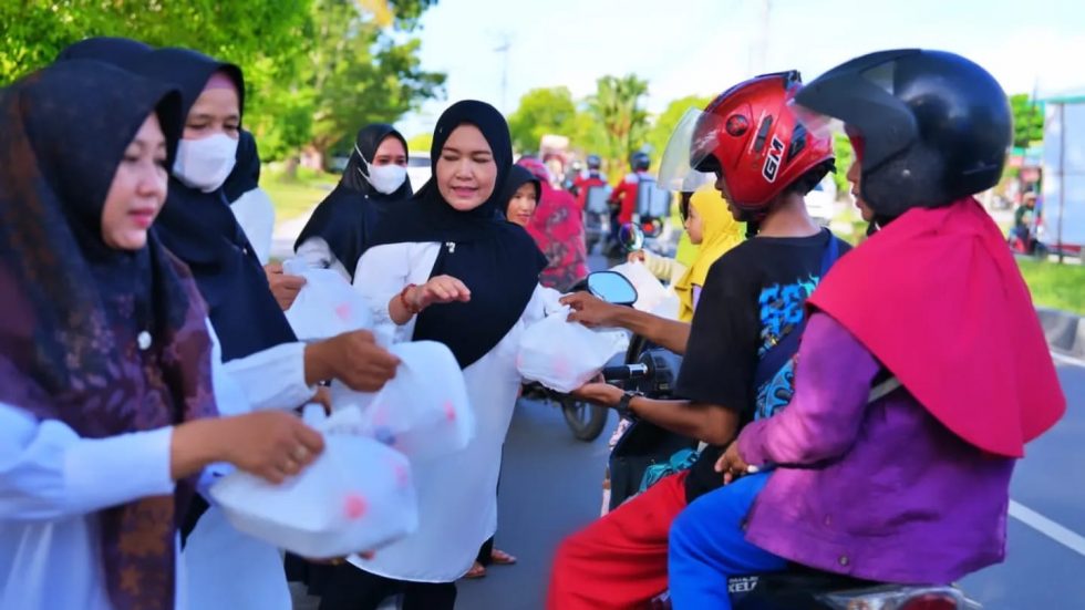 Aksi bagi-bagi takjil yang dipimpin langsung Ketua DWP Setwan Provinsi Kalteng Hj. Fitri Pajarudinnoor beserta anggota DWP Setwan dilaksanakan di ruas Jalan G Obos Palangka Raya, Minggu (24/4/2024).