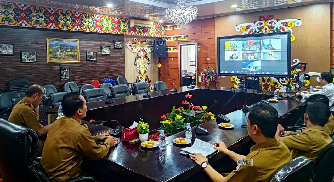 Di aula A kantor Bupati Murung Raya. Asisten III Setda Kabupaten Murung Raya (Mura), Batara didampingi pejabat terkait via daring mendengarkan dan menyimak apa yang disampaikan oleh Plt.Sekjen Kemendagri Tomsi Tohir.
