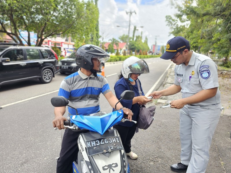 PALANGKARAYA, kaltengtimes.co.id–Guna meningkatkan kepatuhan masyarakat dalam pembayaran Pajak Kendaraan Bermotor (PKB) dan Sumbangan Wajib Dana Kecelakaan Lalu Lintas Jalan (SWDKLLJ) serta pengesahan STNK, Jasa Raharja Cabang Kalimantan Tengah bersama Ditlantas Polda Kalteng dan UPTPPD Samsat Palangka Raya melaksanakan Operasi Gabungan dalam rangka optimalisasi Pendapatan Asli Daerah (PAD) dan meningkatkan disiplin masyarakat dalam berlalu lintas di depan Stadion Sanaman Mantikei pada hari Selasa (25/06).