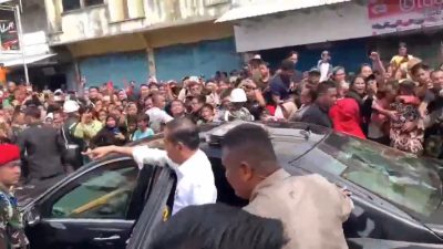 SAMPIT. Kaltengtimes.co.id — Kedatangan Presiden Jokowi saat melakukan kunjungan kerja ke Sampit, Kabupaten Kotawaringin Timur disambut antusias oleh ribuan warga setempat. Warga tumpah ruah untuk menyempatkan bisa bertemu langsung dengan orang nomor satu di Republik Indonesia ini, Rabu (26/6/24).
