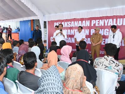 Selanjutnya, Presiden Joko Widodo juga menyerahkan secara simbolis bantuan beras cadangan pangan pemerintah kepada 500 orang Keluarga Penerima Manfaat (KPM) yang berada di Buntok.