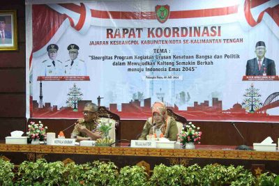 PALANGKA RAYA. Kaltengtimes.co.id — Badan Kesbangpol Prov. Kalteng menggelar Rapat Koordinasi (Rakor) jajaran Badan Kesatuan Bangsa dan Politik (Kesbangpol) se-Kalimantan Tengah Tahun 2024, bertempat Aula Eka Hapakat Lt. III Kantor Gubernur Kalteng, Senin (8/7/24). Peserta kegiatan ini yaitu Kepala Badan Kesatuan Bangsa dan Politik dari 14 Kabupaten/Kota se Kalimantan Tengah, dan Kepala Bidang serta Kepala Sub Bagian Penyusunan Program atau yang membidangi perencanaan pada Badan Kesatuan Bangsa dan Politik Kabupaten/Kota se-Kalimantan Tengah.