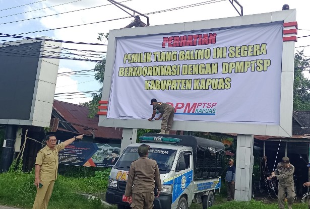KUALA KAPUAS, kaltengtimes.co.id – Rangka upaya penertiban spce iklan atau papan reklame, Kepala Dinas Penanaman Modal Perijinan Terpadu Satu Pintu (PM-PTSP) Kapuas Pangeran Sojuaon Pandiangan beri peringatan keras kepada pemilik puluhan Space Iklan yang tersebar di beberapa tempat di kota Kuala Kapuas.