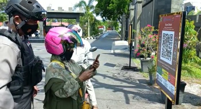 Eko menambahkan, scan barcode aplikasi peduli lindungi bukan hanya untuk masyarakat, namun anggota juga diwajibkan tanpa tebang pilih. and