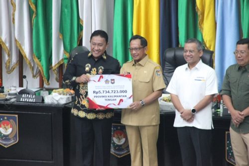 JAKARTA. Kaltengtimes.co.id – Wakil Gubernur Kalimantan Tengah H. Edy Pratowo mengatakan, apresiasi berupa insentif fiskal dari pemerintah pusat kepada daerah, merupakan komitmen serius pemerintah pusat maupun daerah dalam mengendalikan inflasi. “Pada bulan Juli tahun lalu juga kita menerima insentif fiskal dari pemerintah pusat, Alhamdulillah tahun ini kita dapat lagi. Hal ini menunjukkan konsistensi pemerintah daerah dalam melakukan upaya pengendalian inflasi”, ungkap Wagub Edy Pratowo kepada MMCKalteng usai menerima penghargaan insentif fiscal dari Menteri Dalam Negeri RI Tito Karnavian saat Rapat Koordinasi Pengendalian Inflasi Daerah, bertempat di Gedung Sasana Bhakti Praja Kemendagri, Jakarta Pusat, Senin (5/8/24).