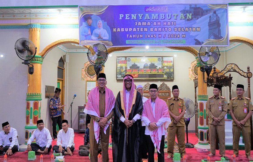 ‘’Atas nama Pemerintah Kab. Barito Selatan dan masyarakat daerah Barito Selatan, saya mengucapkan “selamat datang” kepada jamaah haji Kab. Barito Selatan 1445 H/2024 M semoga bapak/ibu/saudara sekalian mendapatkan haji yang mabrur dan mabrurah,’’kata Pj Bupati.