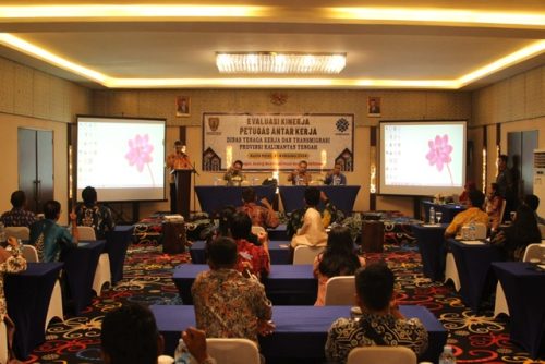 Sahli Gubernur Ahmad Husain saat membacakan sambutan tertulis Plt. Sekda Prov. Kalteng menyampaikan kegiatan Evaluasi Petugas Antar Kerja bertujuan untuk meningkatkan kualitas kompetensi petugas antar kerja serta meningkatkan kualitas pelayanan perantaraan kerja bagi pencari kerja (pencaker) dan pengguna tenaga kerja (perusahaan).
