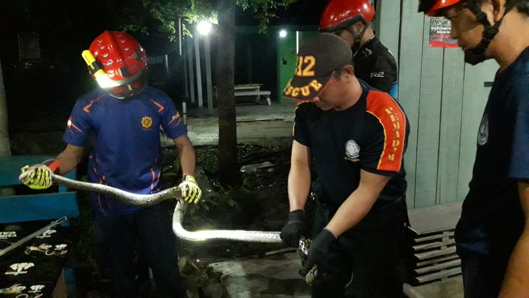 Komandan Rescue Dinas Pemadam Kebakaran dan Penyelamatan Palangka Raya, Sucipto mengatakan, Setelah setengah jam ular berhasil dijinakkan menggunakan peralatan tongkat besi penjepit.