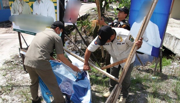 Dalam penertiban kali ini, pihaknya melepas baliho bakal calon kepala daerah yang tidak masuk dalam pasangan calon pilkada yang telah ditetapkan oleh KPU.
