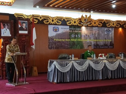 PURUK CAHU. Kaltengtimes.co.id — Pemerintah Kabupaten Murung Raya menggelar Diskusi Peluang dan Nilai Ekonomi Perdagangan Karbon di Aula Cahai Ondhui Tingang, Gedung B kantor Bupati Mura, Kamis (21/11/2024). Kegiatan ini dibuka langsung oleh Asisten III Setda Kab. Mura, Batara, mewakili Pj Bupati Mura.