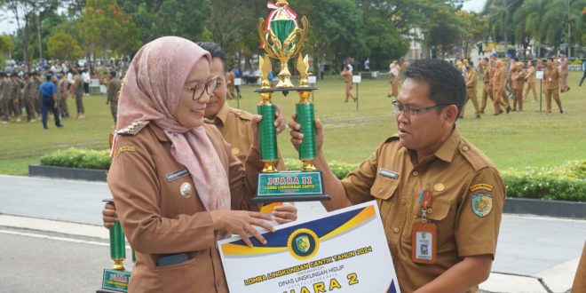 PALANGKA RAYA, Kaltengtimes.co.id – Pj Wali Kota Palangka Raya, Hera Nugrahayu, secara simbolis menyerahkan penghargaan kepada perangkat daerah yang berhasil meraih juara Lomba Lingkungan Cantik 2024. Penyerahan penghargaan ini dilakukan usai pelaksanaan apel gabungan ASN di Halaman Kantor Wali Kota Palangka Raya, Senin (9/12/2024).