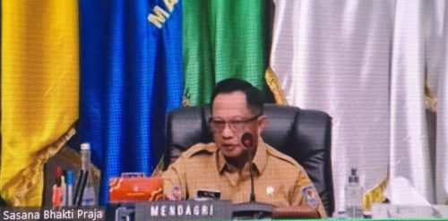 Menteri Dalam Negeri Tito Karnavian saat memimpin Rakor Pengendalian Inflasi secara virtual.(Photo/rizal)