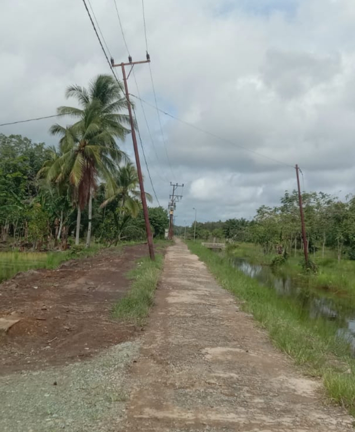 Kuala Kapuas, kaltengtimes co.id – Pelebaran jalan Desa Palingkau Asri Kecamatan Kapuas Murung terhambat pengerjaannya oleh keberadaan belasan tiang listrik milik PLN yang posisinya sekarang berdiri di tengah jalan yang tengah dilakukan peningkatan pelebaran.