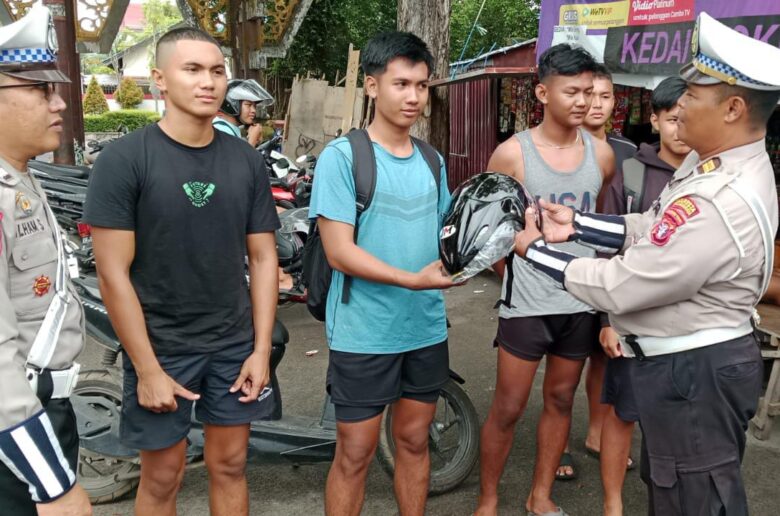 Untuk meningkatkan kesadaran berlalu lintas di kalangan masyarakat, Satlantas Polresta Palangka Raya menggelar kegiatan penyuluhan dan pembagian helm gratis di kawasan Stadion Sanaman Mantikei, Jum’at (17/1/2025).