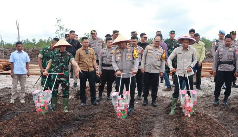 Dalam kegiatan tersebut, Wakapolda Kalteng dan Forkopimda secara simbolis melakukan penanaman bibit jagung sebagai bentuk dukungan terhadap sektor pertanian.