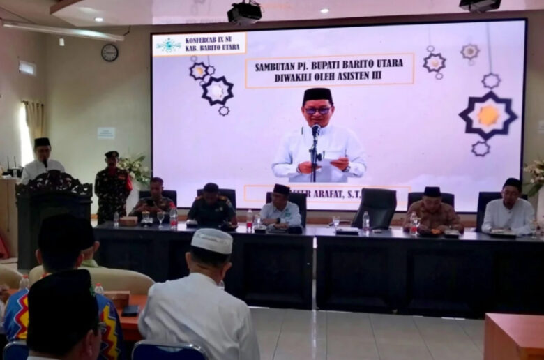 MUARA TEWEH, Kaltengtimes.co.id – Pelaksanaan Konferensi Cabang (Konfercab) IX Nahdlatul Ulama (NU) Kabupaten Barito Utara resmi dibuka oleh Asisten III Bidang Administrasi Umum Setda, Yaser Arafat, mewakili Pj Bupati Barito Utara, Drs. Muhlis. Acara ini diselenggarakan di aula Bappeda Litbang, Muara Teweh, dan diisi dengan Pidato Iftitah Rois Syuriyah PC NU Barito Utara, oleh H Al Hadi, Minggu (9/2/2025).