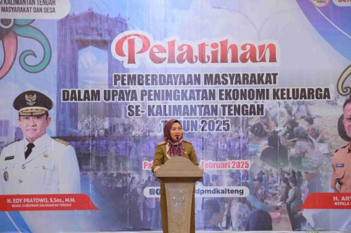Palangka Raya. Kaltengtimes.co.id — Kepala Dinas Pemberdayaan Masyarakat dan Desa (PMD) Provinsi Kalimantan Tengah H. Aryawan melalui Sekretaris Etty Aprilya mengatakan, wanita, khususnya ibu rumah tangga memegang peran yang sangat penting dalam ekonomi keluarga. “Banyak wanita yang ikut terjun langsung ke dunia kerja untuk membantu meningkatkan pendapatan keluarga”, kata Etty dalam sambutannya saat membuka kegiatan Pelatihan Pemberdayaan Masyarakat dalam Upaya Peningkatan Ekonomi Keluarga se-Kalimantan Tengah Tahun 2025, bertempat di Kahayan Ballroom Swiss-Bel Hotel Palangka Raya, Selasa (18/2/2025).