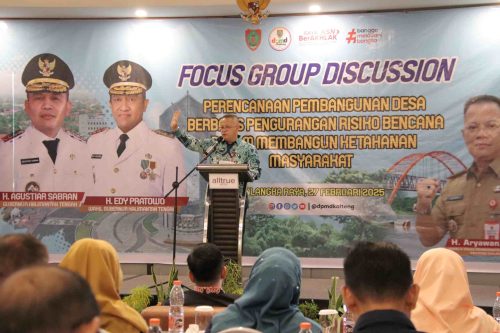 Palangka Raya. Kaltengtimes.co.id — Kepala Dinas PMD Prov. Kalteng H. Aryawan menegaskan bahwa pembangunan desa berbasis pengurangan risiko bencana sangat penting, terutama untuk menghadapi tantangan bencana alam yang semakin kompleks. Ia menekankan perlunya pendekatan ini untuk menciptakan desa yang maju secara ekonomi dan sosial, serta aman dan tangguh terhadap bencana. Hal tersebut dikatakan Aryawan dalam sambutannya saat membuka Focus Group Discussion (FGD) tentang Perencanaan Pembangunan Desa Berbasis Pengurangan Risiko Bencana dalam Membangun Ketahanan Masyarakat. Kegiatan ini dilaksanakan di Alltrue Hotel Palangka Raya, Kamis pagi (27/2/2025).
