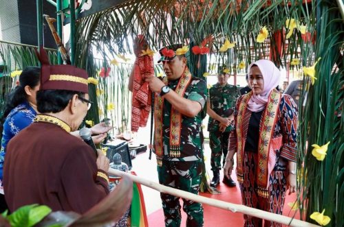 Prosesi upacara adat potong pantan menandai penyambutan Panglima Kodam XII/Tanjungpura Mayjen TNI Jamasllulael.(Photo/fery)