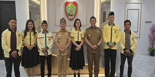 Ketua Pemuda Katolik Komisariat Daerah Kalimantan Tengah, Dorothea Sthallhani Jasi ditemani beberapa pengurus berdiskusi dengan Gubernur Kalteng Agustiar Sabran dan Wagub Kalteng, H. Edy Pratowo.