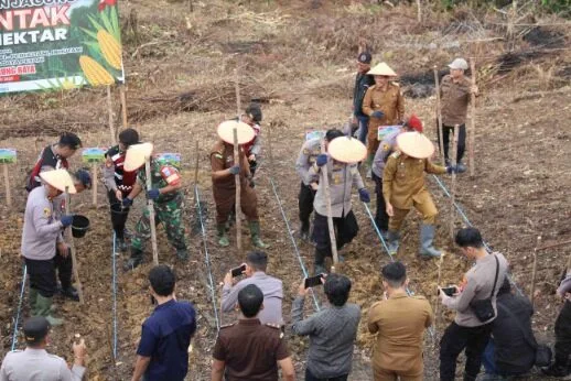 PURUK CAHU, kaltengtimes.co.id–Pemerintah Kabupaten Murung Raya, Kalimantan Tengah bersama jajaran Polres setempat melaksanakan tanam perdana tanaman jagung, sebagai upaya mendukung penuh program penanaman jagung 1 juta Hektar yang dicanangkan oleh Kementerian Pertanian dan Polri.
