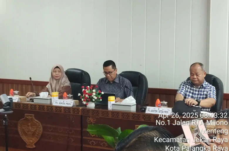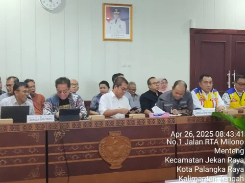 Palangka Raya. Kaltengtimes.co.id — Plt. Sekretaris Daerah Provinsi Kalimantan Tengah Leonard S. Ampung pimpin Rapat Koordinasi Percepatan Penanganan Darurat Bencana Banjir di Provinsi Kalteng, bertempat di Ruang Rapat Bajakah Kantor Gubernur Kalteng, Sabtu (26/4/2025).