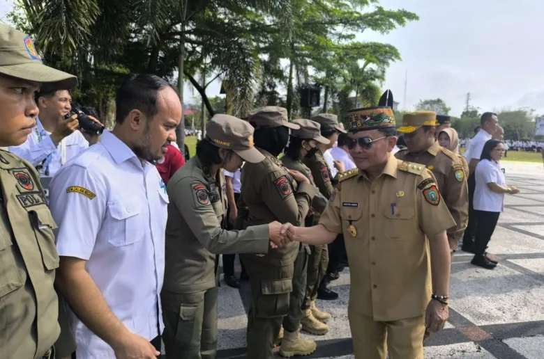 Palangka Raya. Kaltengtimes.co.id – Gubernur Kalimantan Tengah H. Agustiar Sabran memimpin Apel Gabungan yang berlangsung di Halaman kantor Gubernur Kalteng, Selasa (6/5/2025). Apel gabungan tersebut diikuti oleh jajaran Pejabat Tinggi Pratama dan seluruh tenaga honorer di lingkungan Pemerintah Provinsi Kalimantan Tengah.