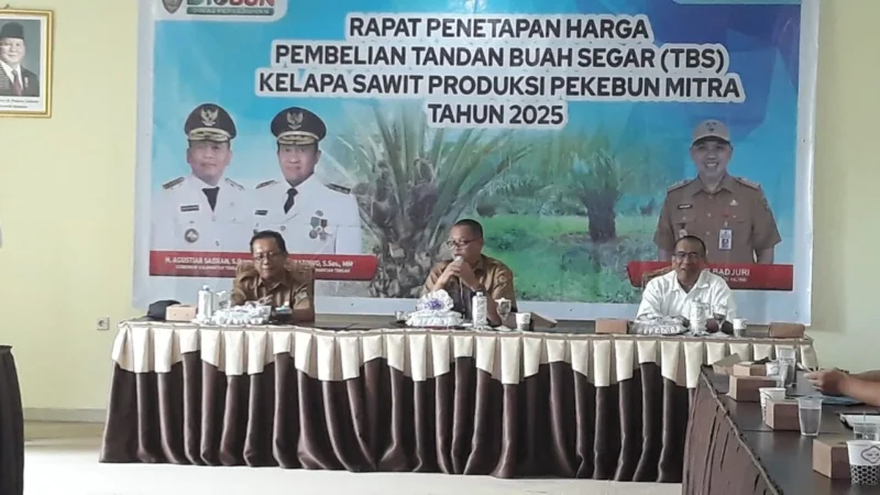 Palangka Raya. Kaltengtimes.co.id — Pemerintah Provinsi Kalimantan Tengah melalui Dinas Perkebunan menggelar Rapat Penetapan Harga Pembelian Tandan Buah Segar (TBS) Kelapa Sawit Produksi Pekebun untuk Periode II bulan April 2025, bertempat di Aula Dinas Perkebunan Prov. Kalteng, Rabu (6/5/2025).