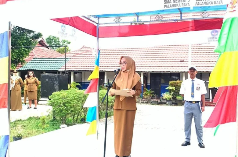 Palangka Raya. Kaltengtimes.co.id — Dinas Perpustakaan dan Arsip Provinsi Kalimantan Tengah terus berupaya dan berinovasi dalam rangka meningkatkan kemajuan perpustakaan dan kearsipan di Kalimantan Tengah. Dengan tujuan besar tersebut, Kepala Dinas Perpustakaan dan Arsip Provinsi Kalimantan Tengah Nunu Andriani menjadi Inspektur Upacara di SMAN 5 Palangka Raya, Senin (5/5/2025).