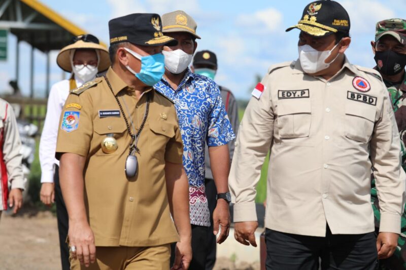 PALANGKA RAYA. Kaltengtimes.co.id – Program Food Estate di Kabupaten Kapuas dan Pulang Pisau yang menjadi Program Strategis Nasional sebagai lumbung pangan nasional sebagaimana arahan Presiden RI, Joko Widodo, saat ini terus dipacu Pemerintah Provinsi Kalimantan Tengah. ‘’Saya optimis Program Food Estate ini akan berhasil dan berdampak luas diberbagai sektor sehingga dapat mensejahterakan masyarakat di Kalimantan Tengah,’’ ucap Gubernur H.Sugianto Sabran, saat meninjau kawasan Food Estate di Desa Belanti Siam, Kabupaten Pulang Pisau, Sabtu (6/11). Dalam kunjungan tersebut, Gubernur didampingi Wakil Gubernur Kalimantan Tengah, H.Edy Pratowo, Ketua TP-PKK Ivo Sugianto Sabran dan Pj.Sekda Prov.Kalteng, H.Nuryakin dan sejumlah kepala Perangkat Daerah.