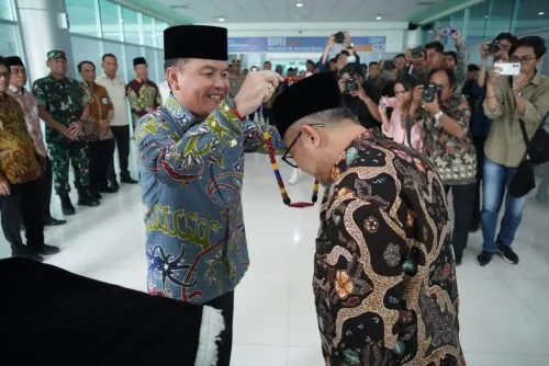 Palangka Raya. Kaltengtimes.co.id — Gubernur Kalimantan Tengah H. Agustiar Sabran, didampingi Wakil Gubernur H. Edy Pratowo, menyambut kedatangan Menteri Pendidikan Dasar dan Menengah (Mendikdasmen) RI Abdul Mu`ti di Bandara Tjilik Riwut, Palangka Raya, Jumat (9/5/2025).